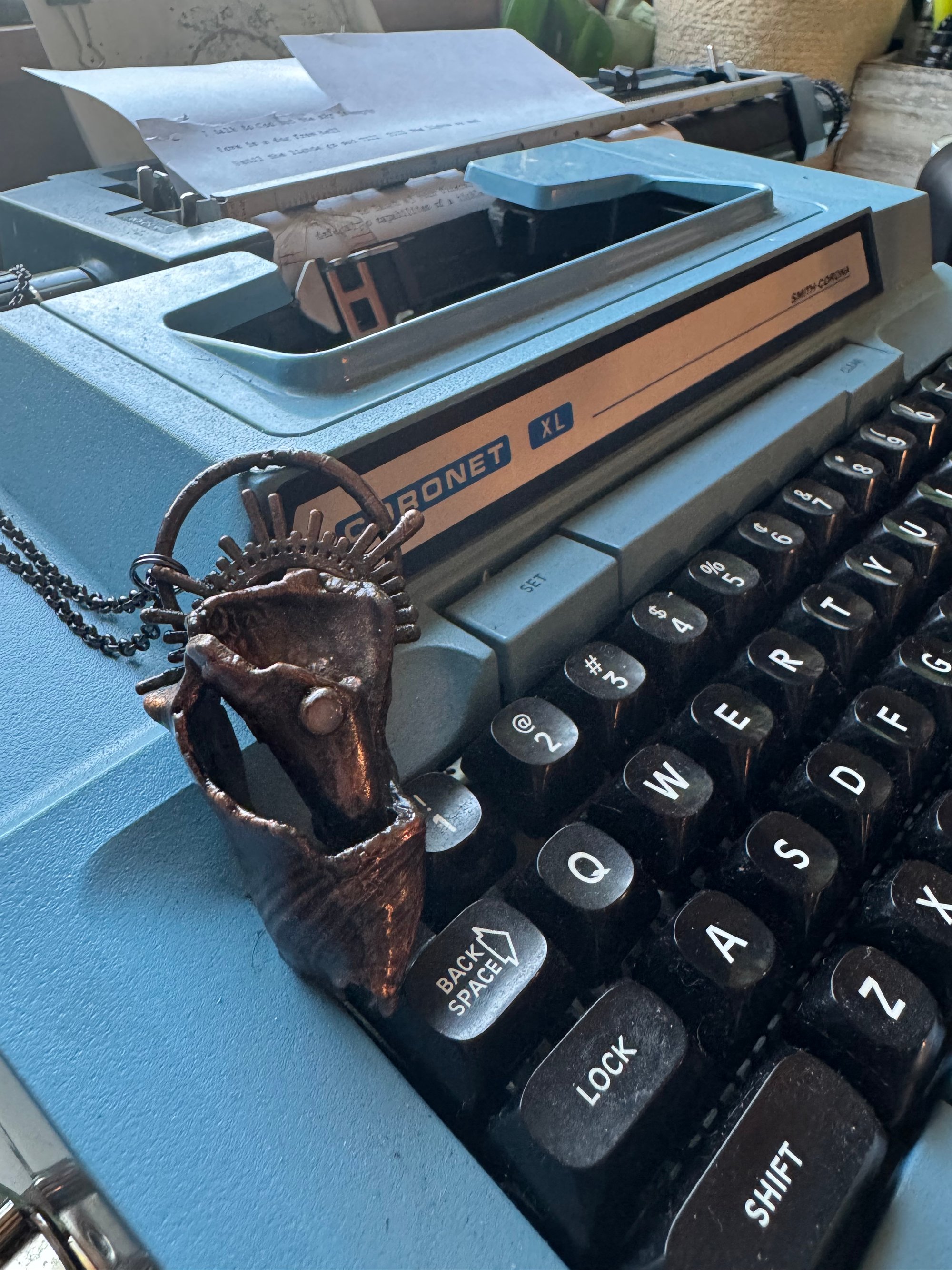 A relic of tide and moon, this necklace feels as though it was lifted from a place where the sea keeps its oldest secrets—its seashell cradling a pale moonstone that glows like captured dusk. Formed through electroforming, the piece is slowly grown rather than made: layers of metal are drawn onto the organic form through an electric current, encasing it in a raw, luminous shell that preserves every curve and imperfection. The result is something both ancient and otherworldly—part ocean offering, part celestial artifact, suspended in a quiet, enduring shimmer.
